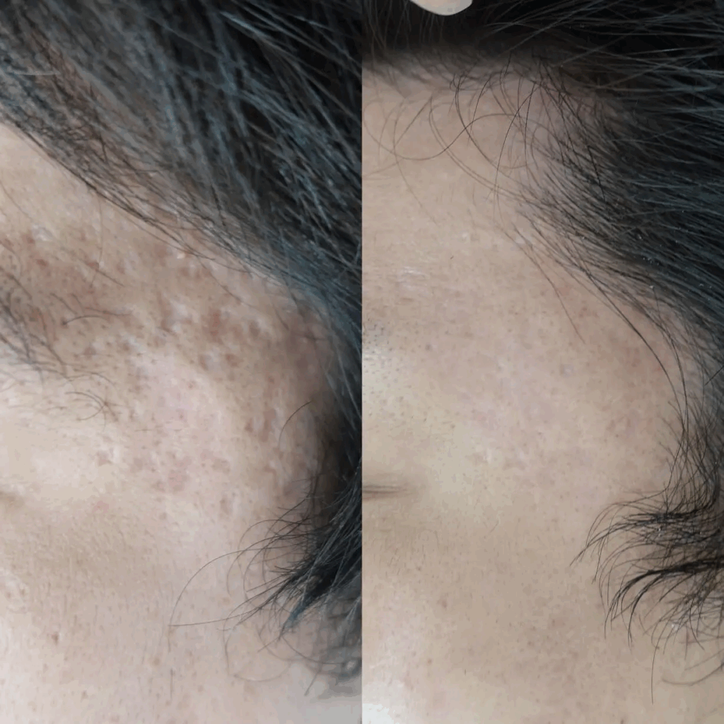 症例1.コメカミにある深いニキビ跡の凹みの症例
