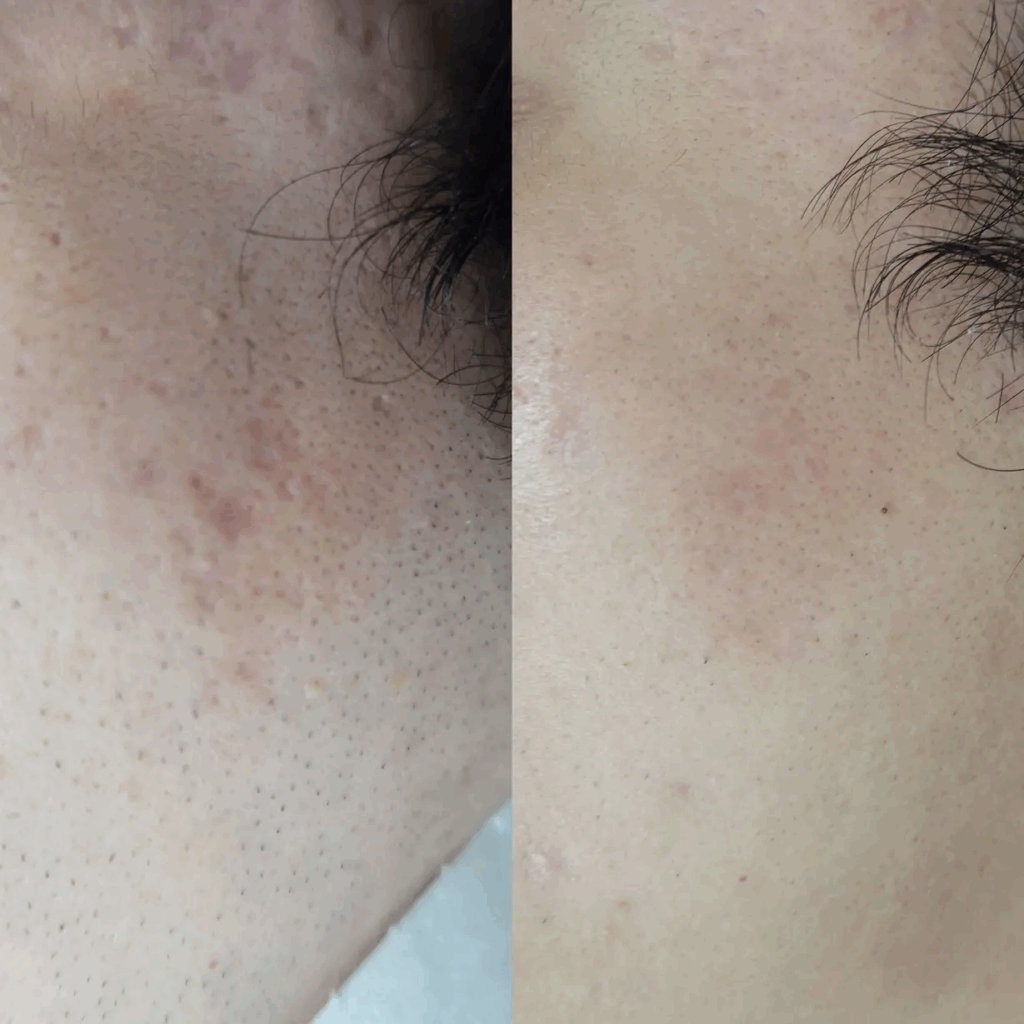 - 施術直後は、肌に白いポツポツとした跡や点状出血が見られることがあります。