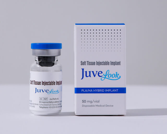 | 特徴 | トウモロコシ・ジャガイモ・サトウキビなどのデンプン由来成分を化学処理した製剤であり、生体適合性が高く、安全性に配慮された素材。体内に注入されると線維芽細胞の働きが活性化され、コラーゲン・ヒアルロン酸・エラスチンなどの産生が促進される。 ジュベルックのポリ乳酸粒子は丸みを帯びた形状に設計されており、周囲組織への過度な刺激を抑え、しこりのリスクが低減されている。 |