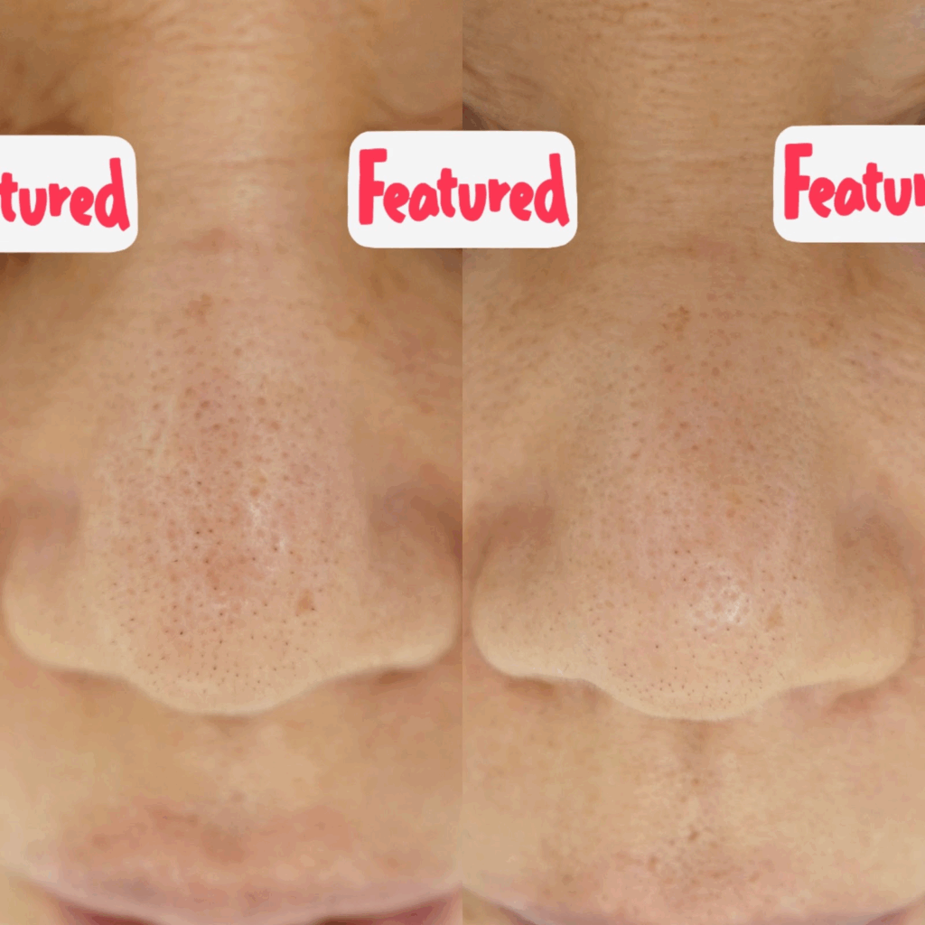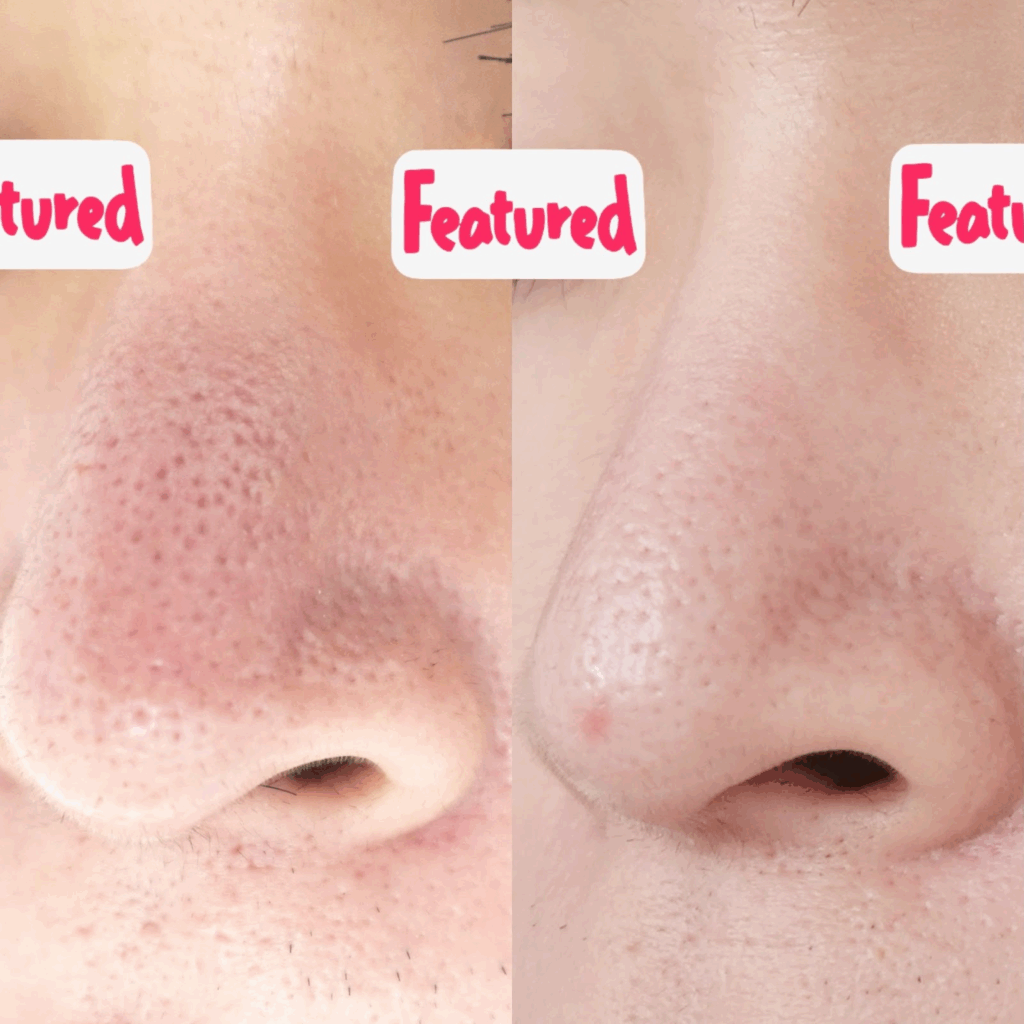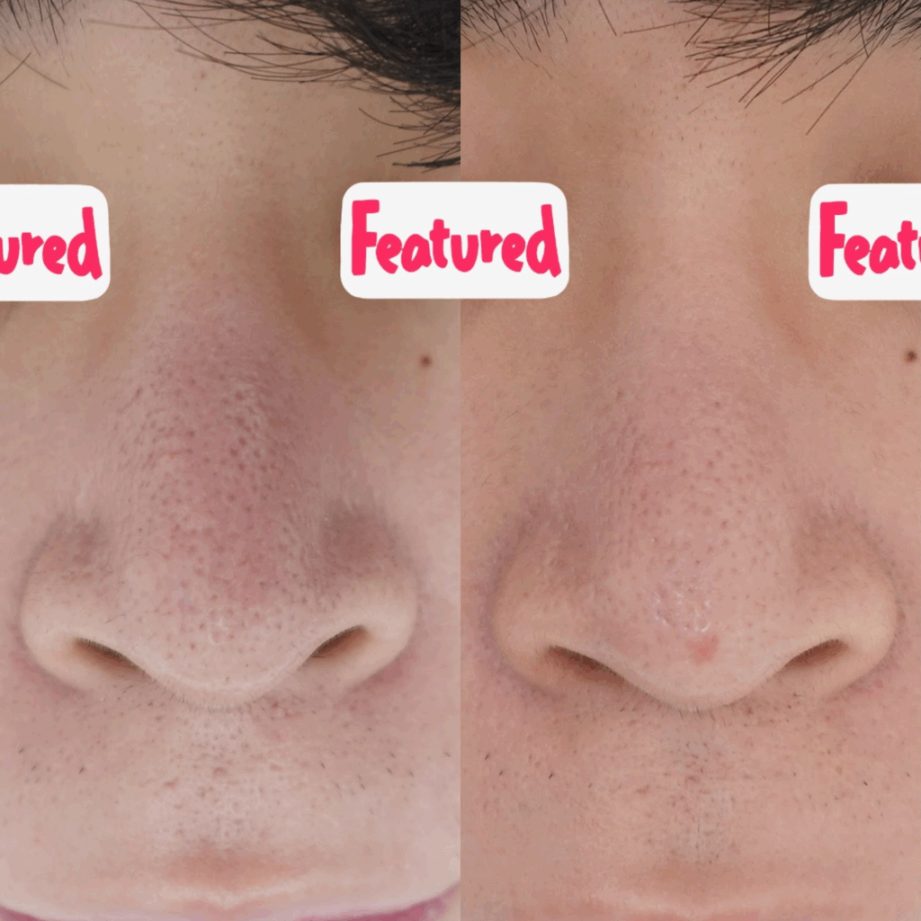 治療内容鼻にできた毛穴の黒ずみにお悩みだった患者様です。施術前の画像(左)では、鼻から小鼻にかけて毛穴の開きや黒ずみが目立っていました。