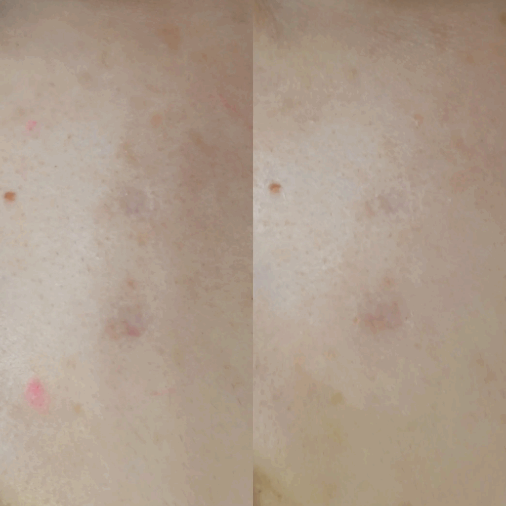 傷跡で薄くなった組織が正常に近くなり、透けて見えていた毛細血管や赤みも減っています。