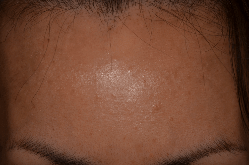 治療内容 | 「ひたいにできた黄色いできものが炭酸ガスレーザーでもアグネスという高周波装置でも除去できず再発した」とお悩みで当院を受診した40代女性の患者様。ラジオ波メスを使って除去しました。 |
